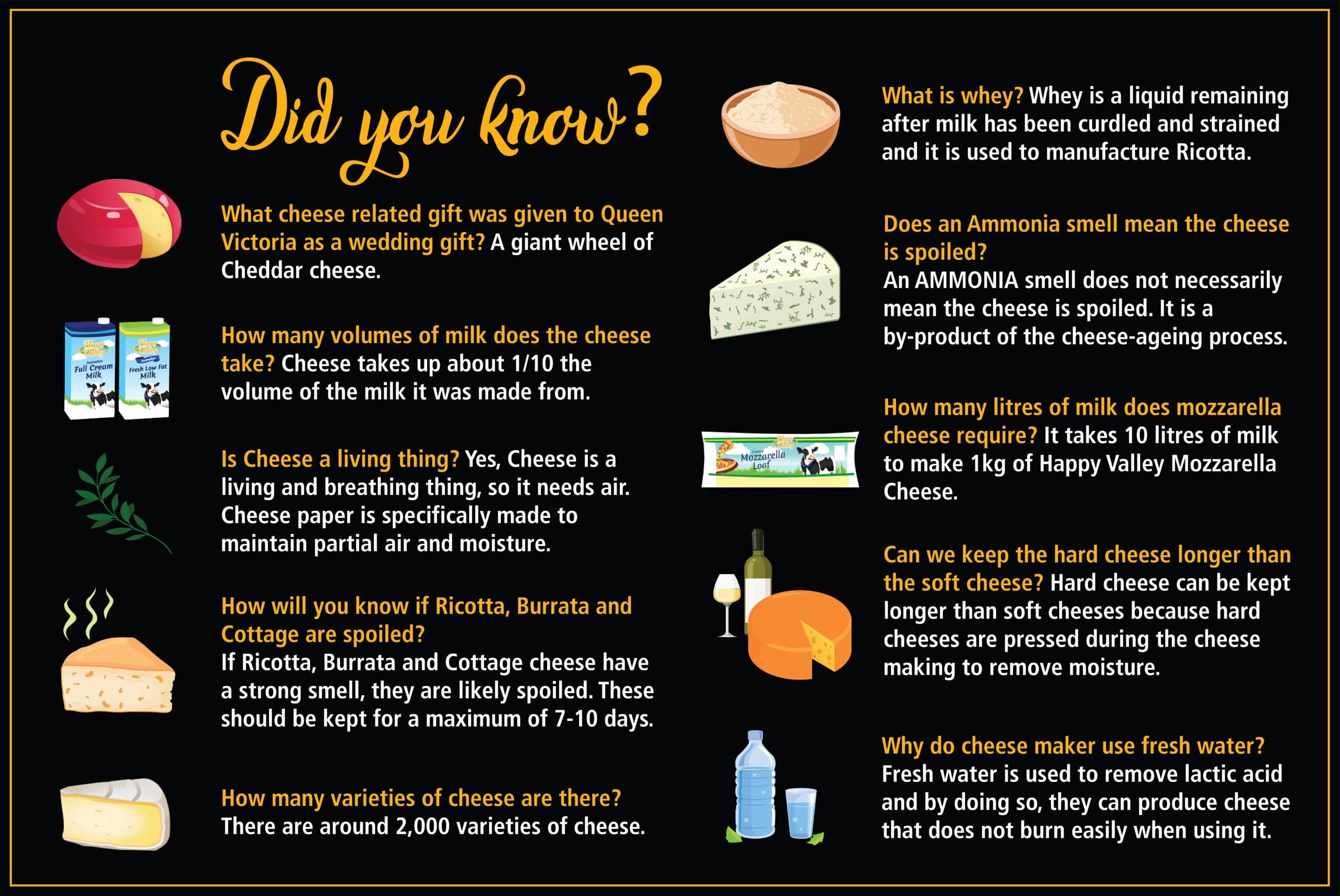 Store Happy Valley Dairy cheese in an airtight container in your fridge, at or below five degrees. Happy Valley Dairy UHT milk can be stored in the pantry until opening, then it should also be stored in your fridge at or below five degrees.